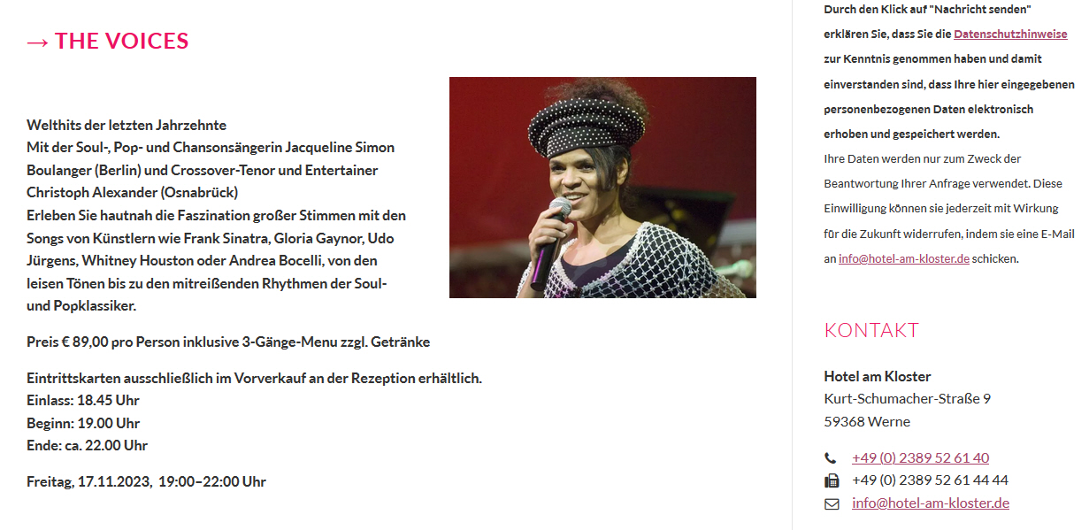 (Eintrittskarte inkl. 3-Gang Menü: 77,- EUR zzgl. Getränke)